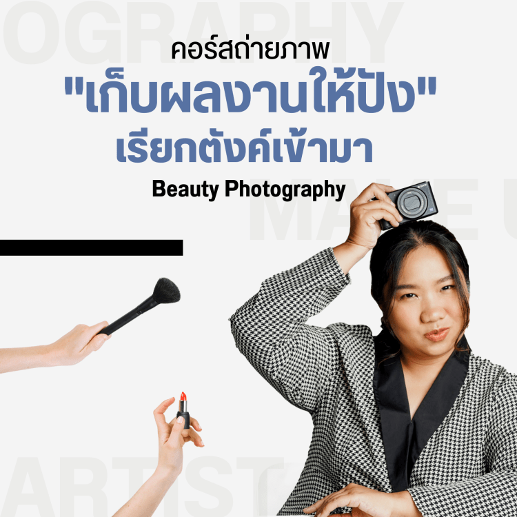 คอร์สที่ทำขึ้นมาสำหรับช่างแต่งหน้า ช่างเสริมความงาม หรือคลินิกเสริมความงามต่างๆ ที่จะทำให้คุณเก็บผลงานได้สวยเหมือนกับเห็นตัวจริง เพราะหลายคนฝีมือดี แต่ถ่ายรูปไม่สวย ทำให้ลูกค้าคิดว่าคุณฝีมือไม่ดี เลยไม่อยากจ้าง คอร์สนี้จะมาบอกเทคนิค เคล็ดลับในการเก็บผลงานยังไงให้ออกมาดูดี มีออร่าจับจนคนอยากจ้างคุณไปแต่งหน้า (ดูเพิ่มเติม)