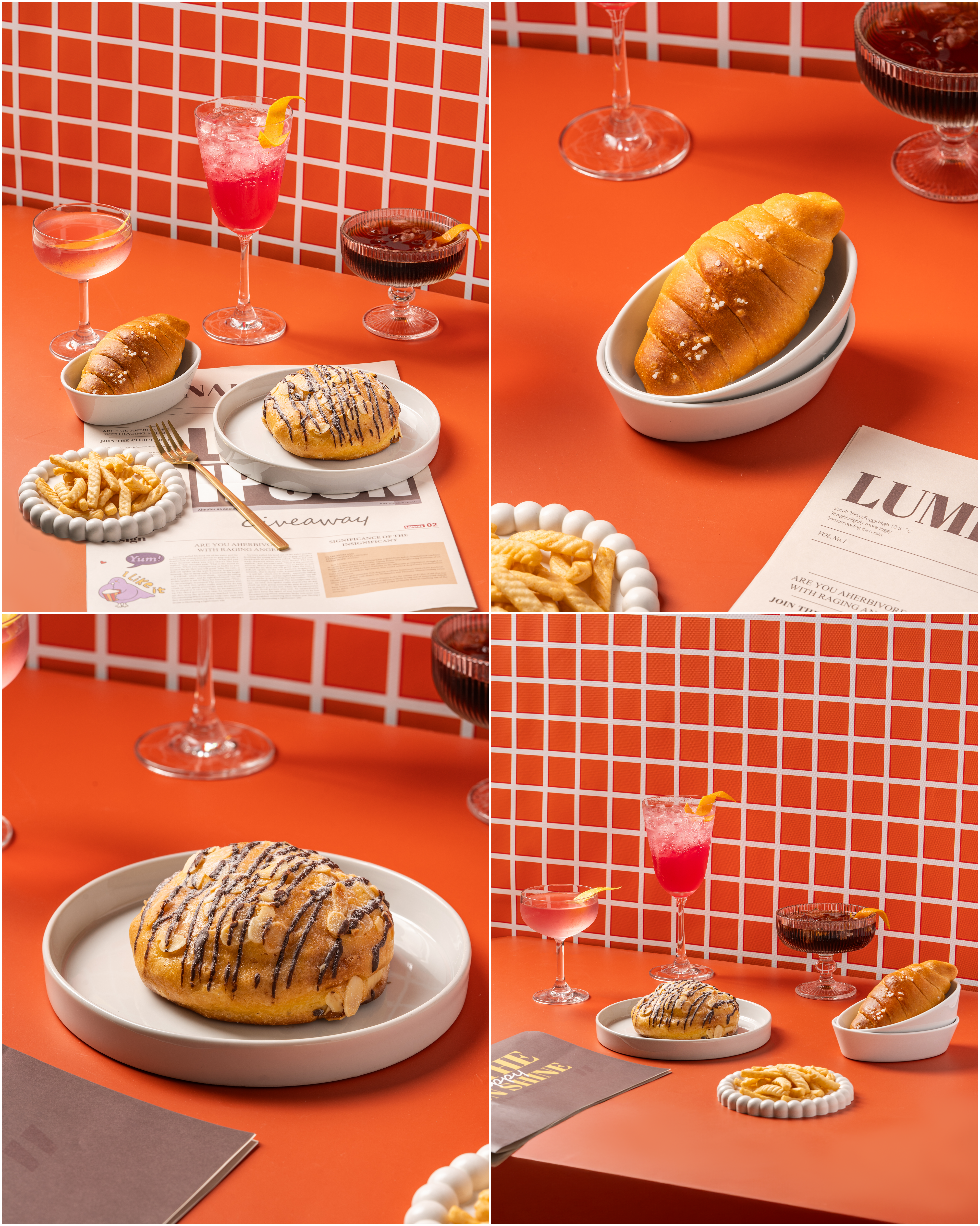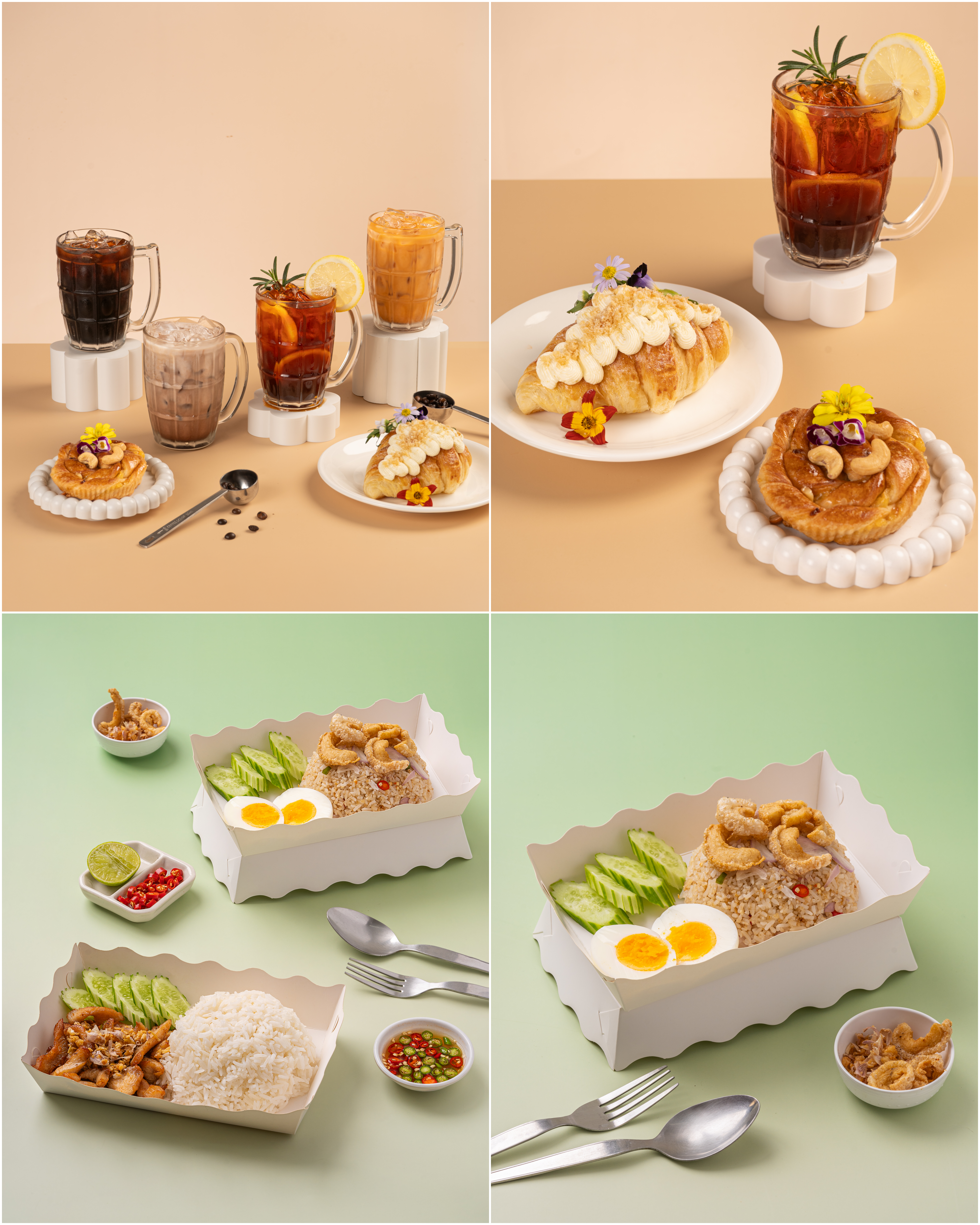 –ฉากสีต่างๆ สามารถแจ้งได้ว่าต้องการฉากสีอะไร หรือสีโทนไหนเพื่อให้ทีมงานช่วยดูให้ (ภาพฉากสีจะเป็นการถ่ายอาหารคู่กับฉาก แต่จะไม่มี theme พิเศษ หากต้องการสามารถสอบถามเพิ่มเติมได้)