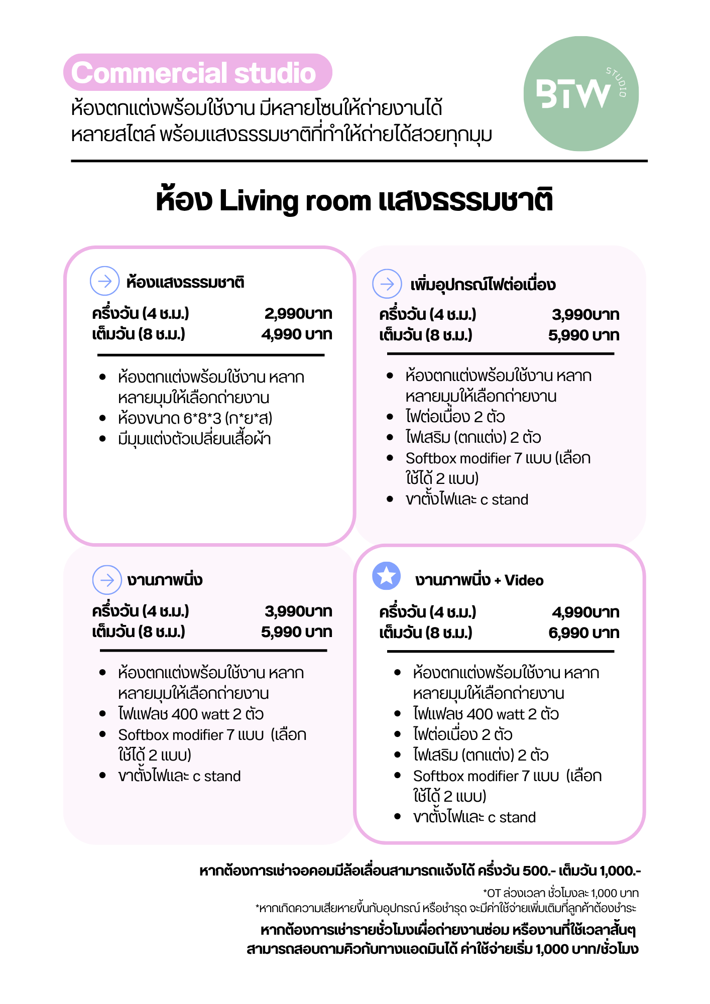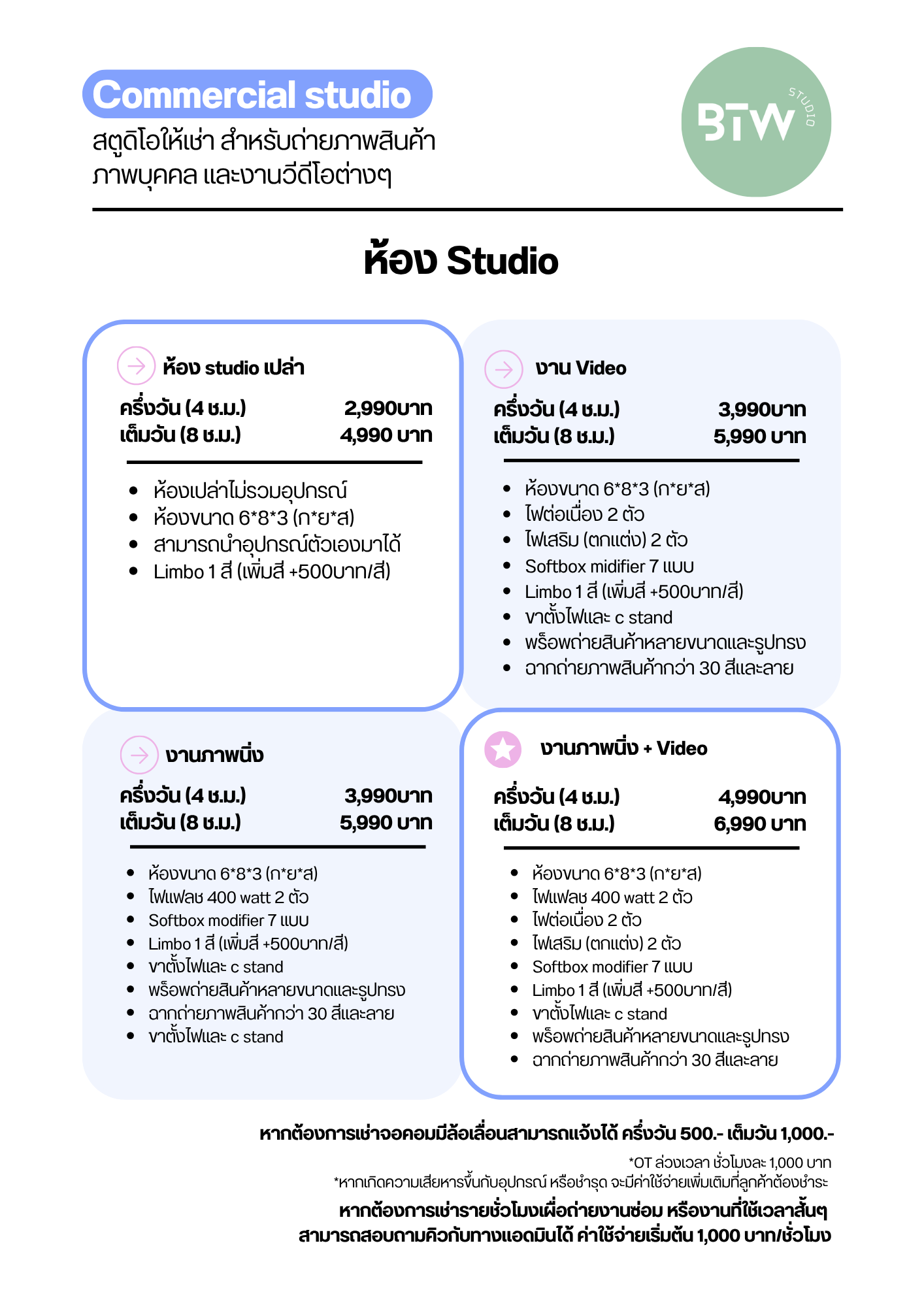 มีทั้งห้องเปล่าและเช่าอุปกรณ์ไฟเสริม